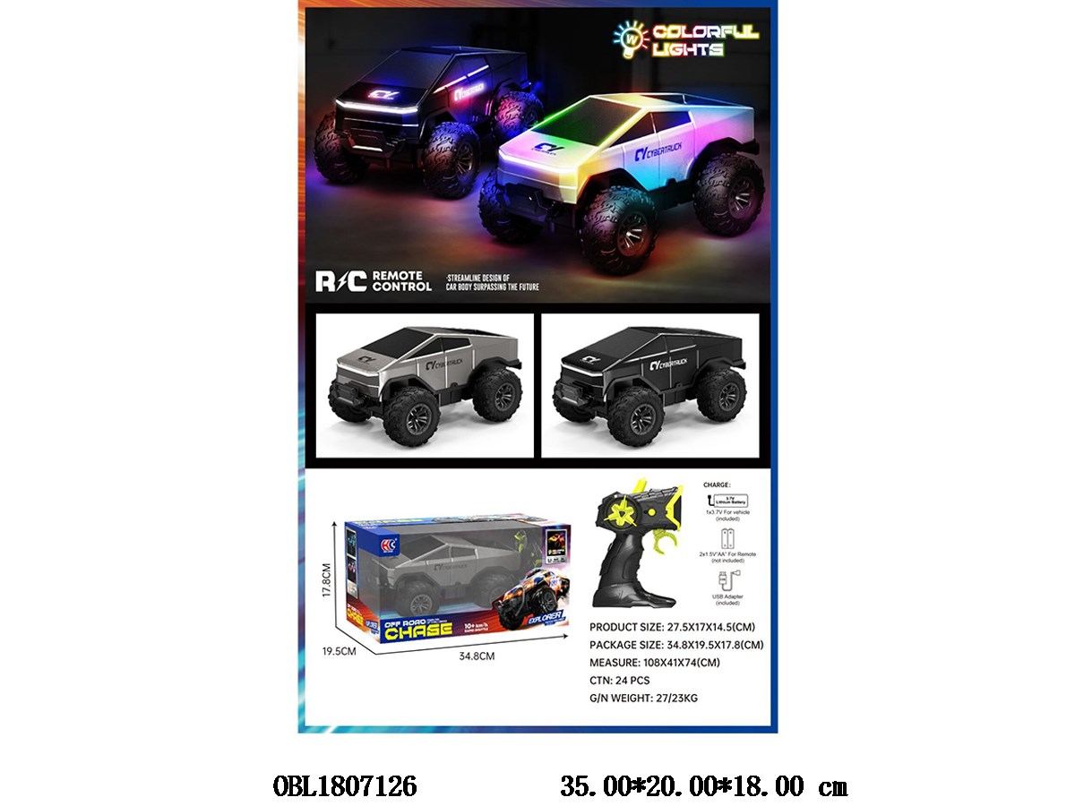 5通遥控越野车带灯光配USB线 车身3.7V包电 遥控2*AA不包电 27频率 2色混装