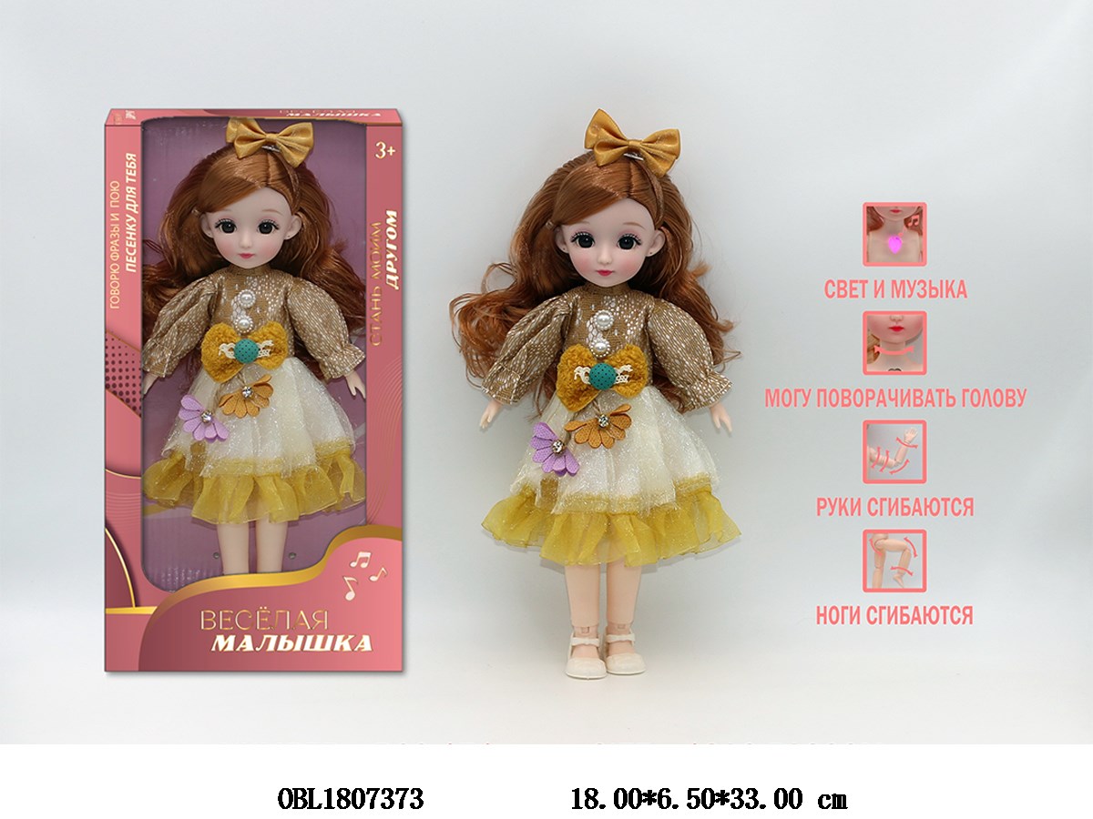 首页 > 俄文芭芘公仔系列 > 俄文12寸3D仿真眼实身活动关节芭芘带灯光音乐 俄文IC 主体衣服1款1色 3*LR44包电