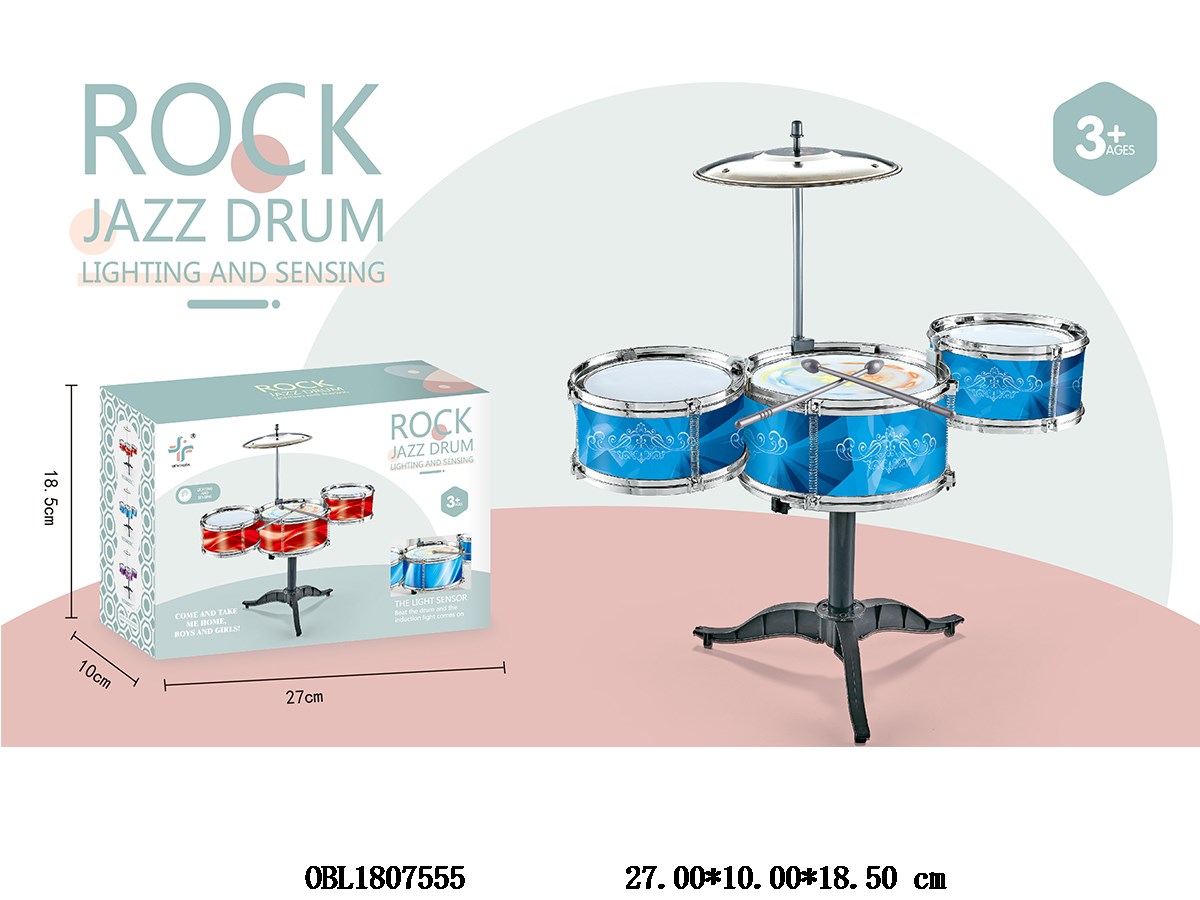 儿童爵士鼓 宝石蓝小三鼓 带灯光 3*AG10包电