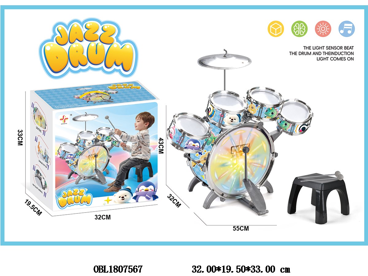 儿童爵士鼓 小竖五鼓 带灯光 3*AG10包电