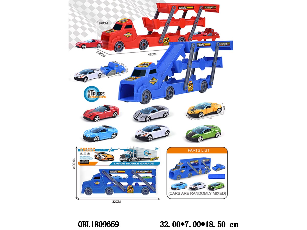 弹射收纳车配3只滑行车 1个弹射器 大车2色混装 车仔款式随机