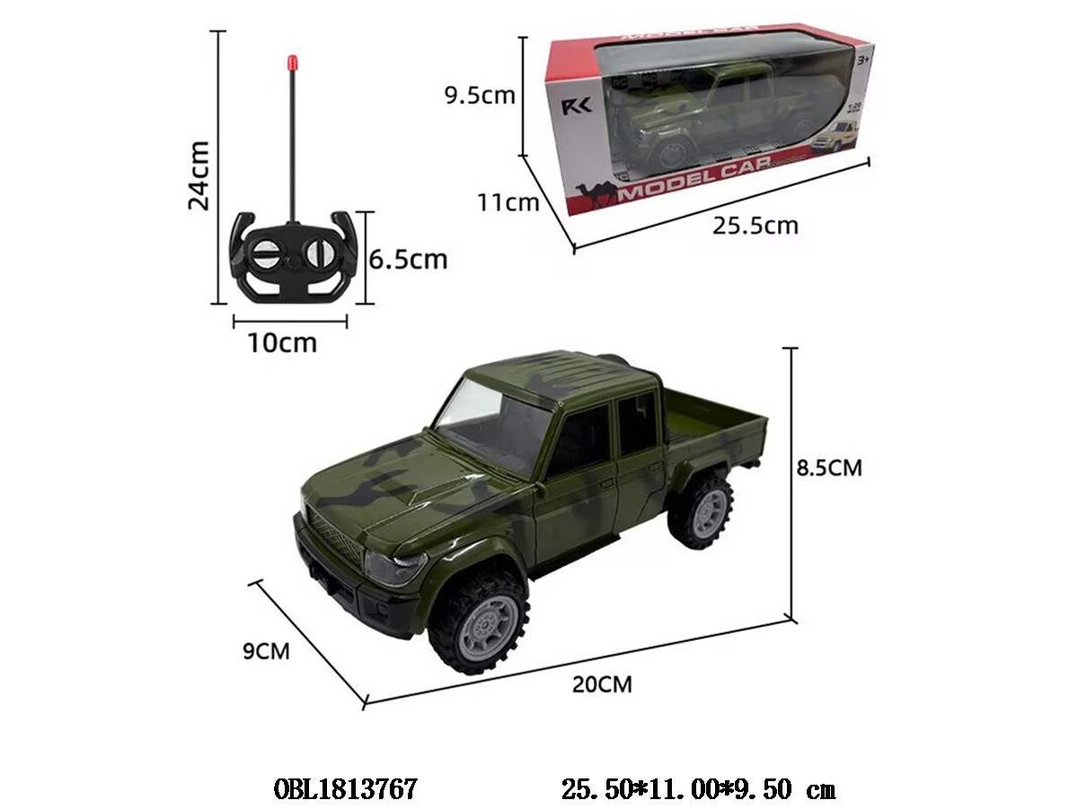 四通遥控车带灯光 车身2*AA不包电 遥控器3*AA不包电 27频率 绿色/沙漠色混装