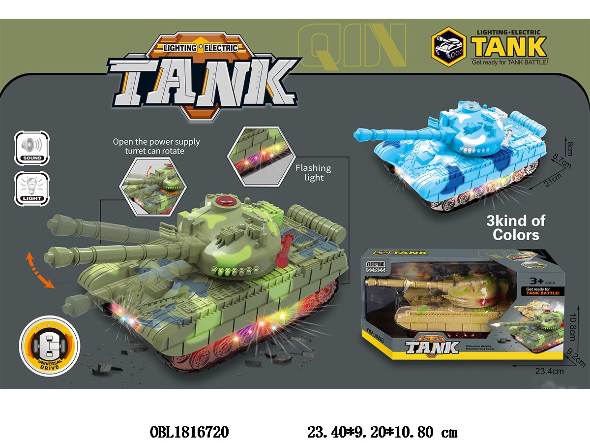 电动坦克带灯光音乐 3*AA不包电 3色混装