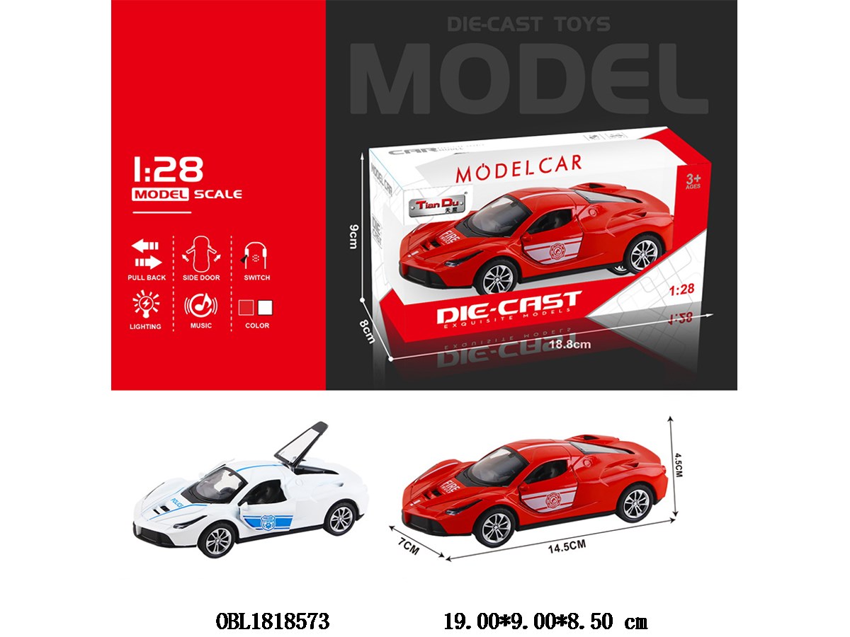首页 > 合金车 > 1:28仿真合金回力警车带灯光音乐 3*AG3包电 2款混装 可开门