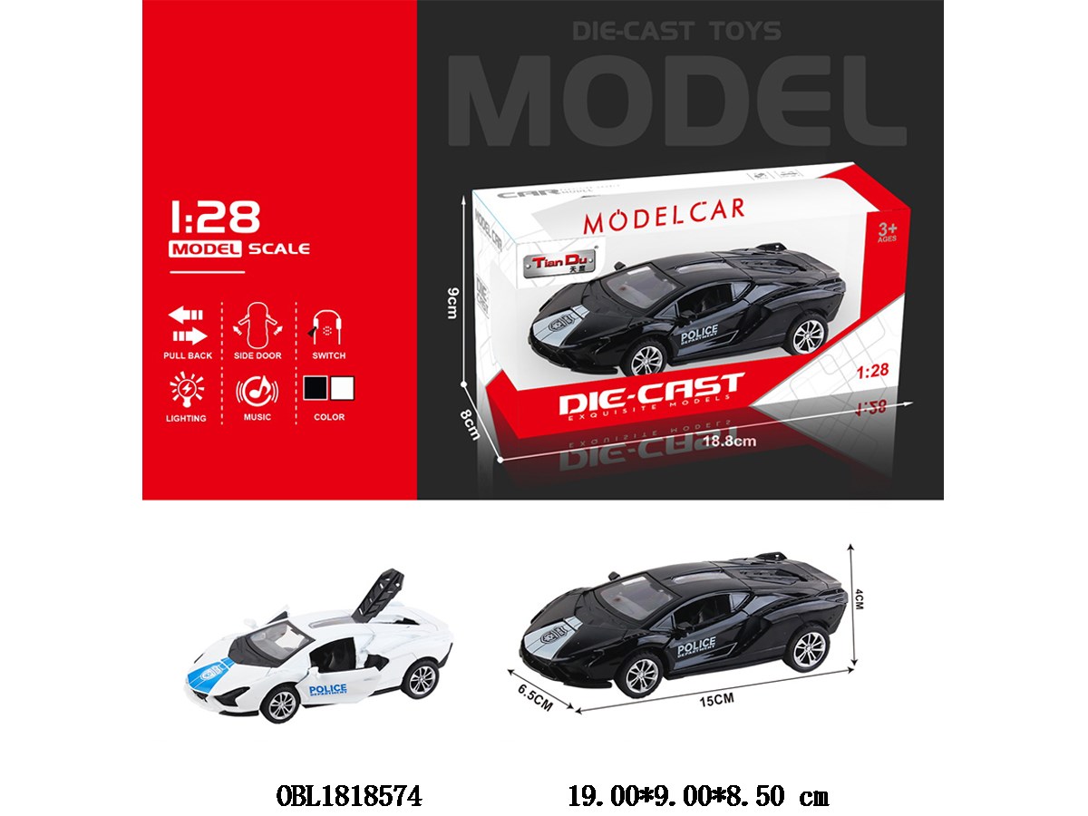 首页 > 合金车 > 1:28仿真合金回力警车带灯光音乐 3*AG3包电 2款混装 可开门
