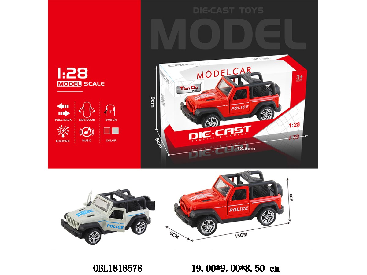首页 > 合金车 > 1:28仿真合金回力警车带灯光音乐 3*AG3包电 2款混装 可开门