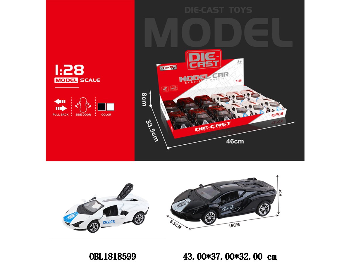 1:28仿真合金回力警车 可开门 2款混装 12只装1展示盒