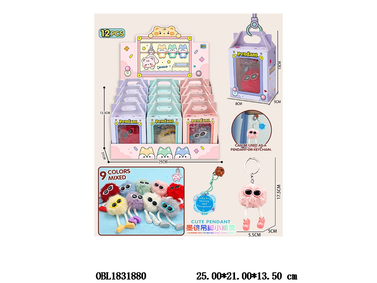 墨镜吊脚小精灵挂件钥匙扣 10色混装 12小盒装一展示盒