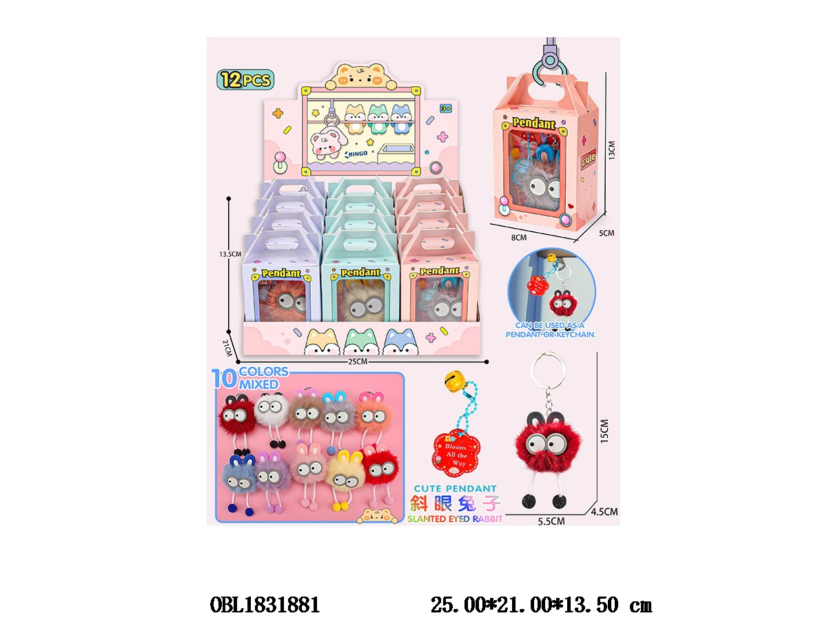 斜眼兔子挂件钥匙扣 10色混装 12小盒装一展示盒