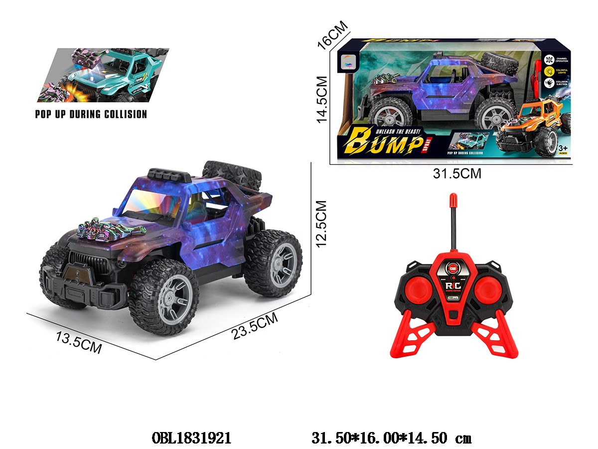 四通碰撞遥控车 车身3*AA不包电 遥控器2*AA不包电 27频率 2色混装