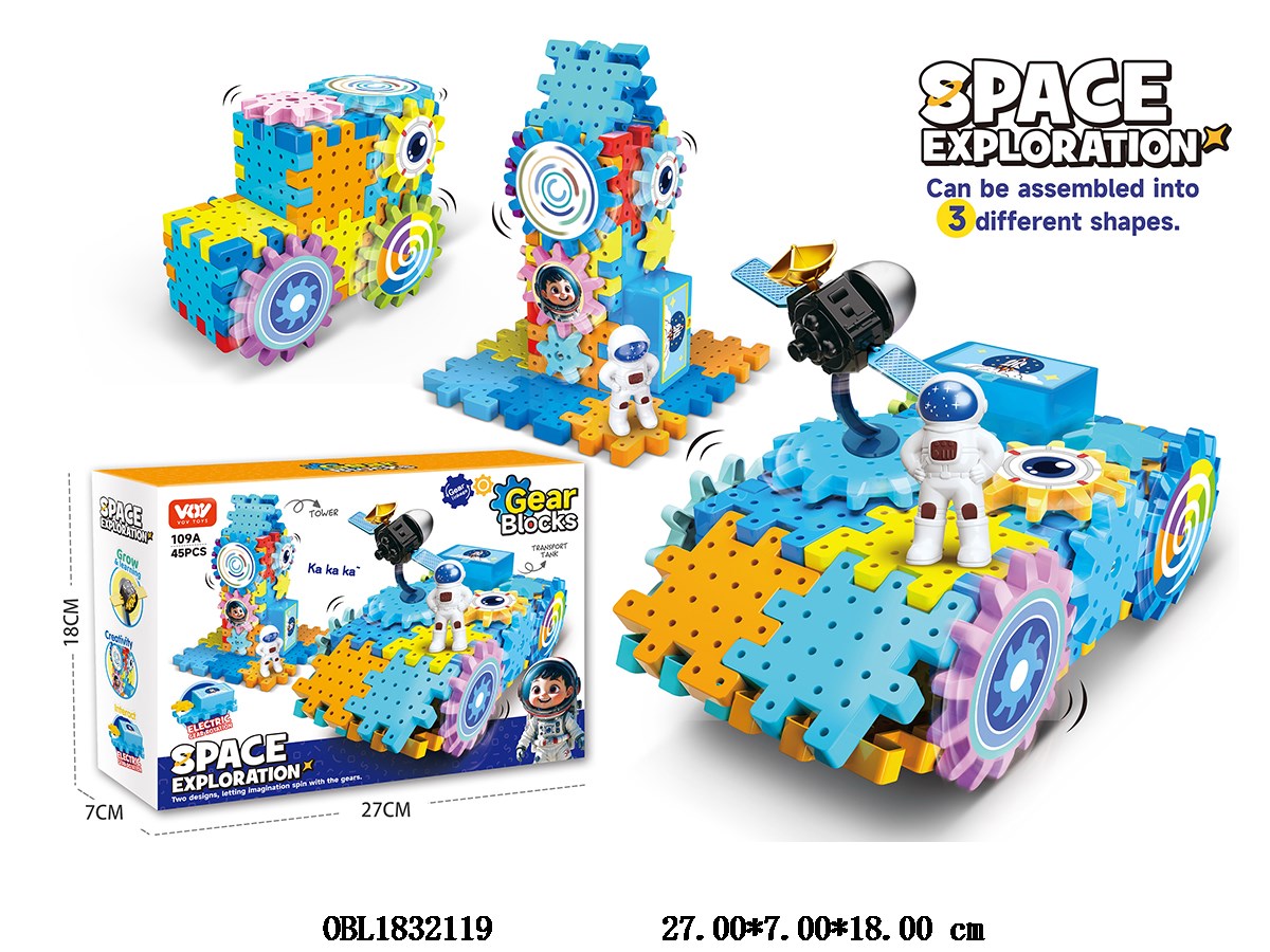 益智航天系列旋转齿轮积木 2*AA不包电 45PCS