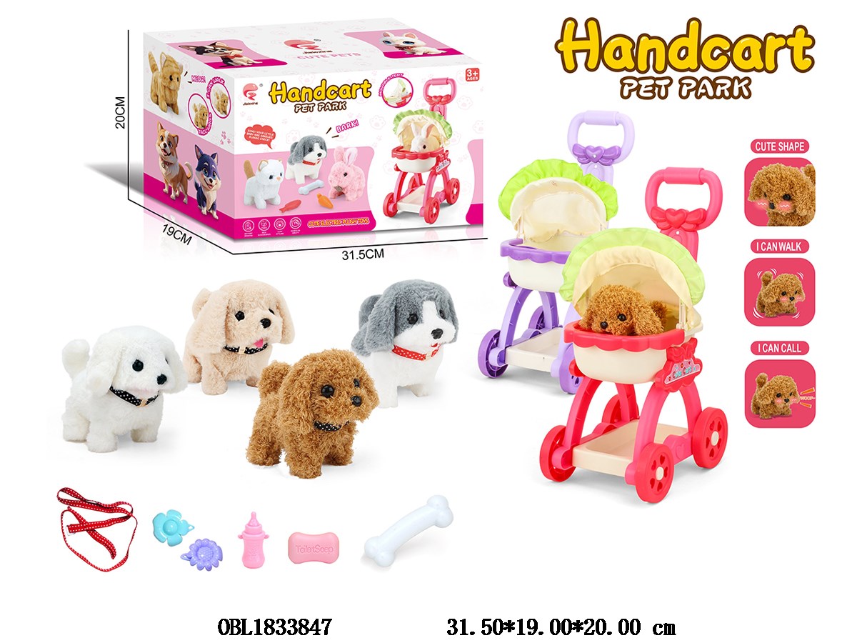 首页 > 电动动物 > 电动行走萌狗推车套装 带叫声 2*AA不包电 狗4款混装 推车2色混装