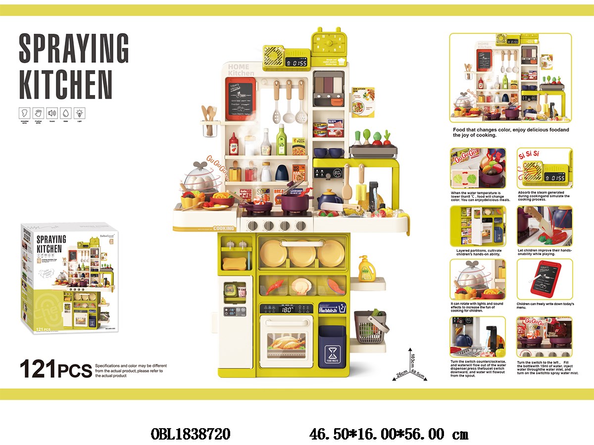 首页 > 厨具家具套装 > 厨具台套装带灯光音效喷雾 抽烟 可出水 变色食物 总7*AA不包电
