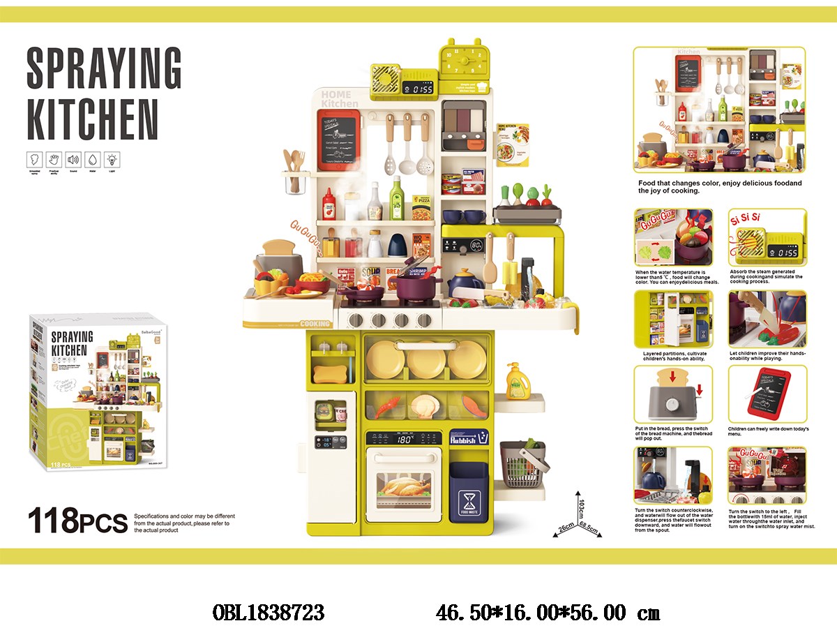 首页 > 厨具家具套装 > 厨具台套装带灯光音效喷雾 抽烟 可出水 变色食物 总5*AA不包电