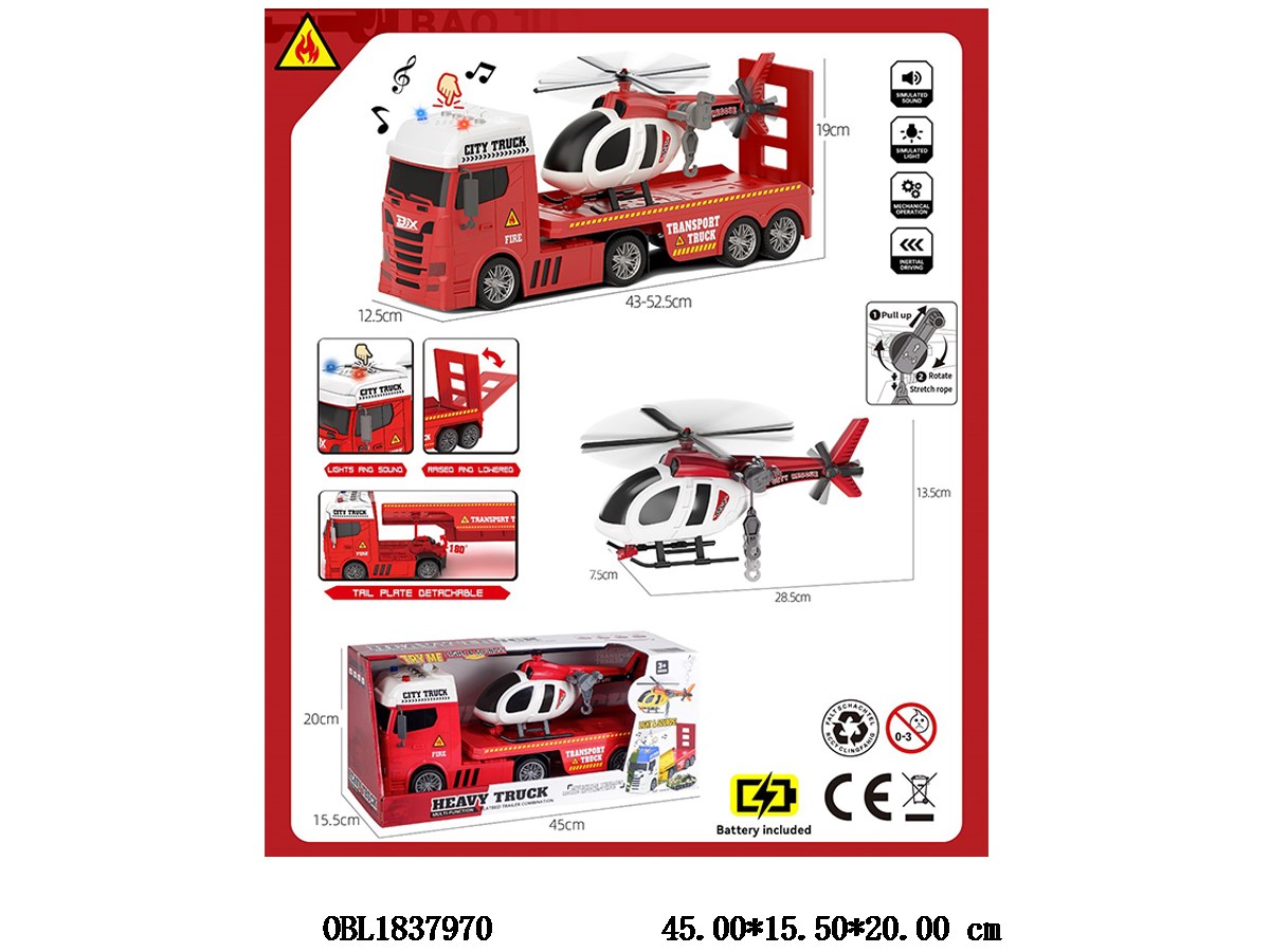首页 > 惯性车 > 惯性消防运输车带灯光声音 3*AG13包电 载1只无功能飞机