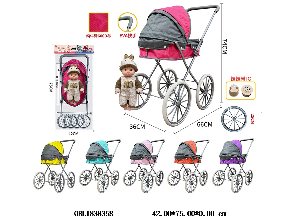 铁制公仔手推车 带14寸空身娃娃带IC 2*AG13包电 主体衣服一款一色 6色混装 也可挑选