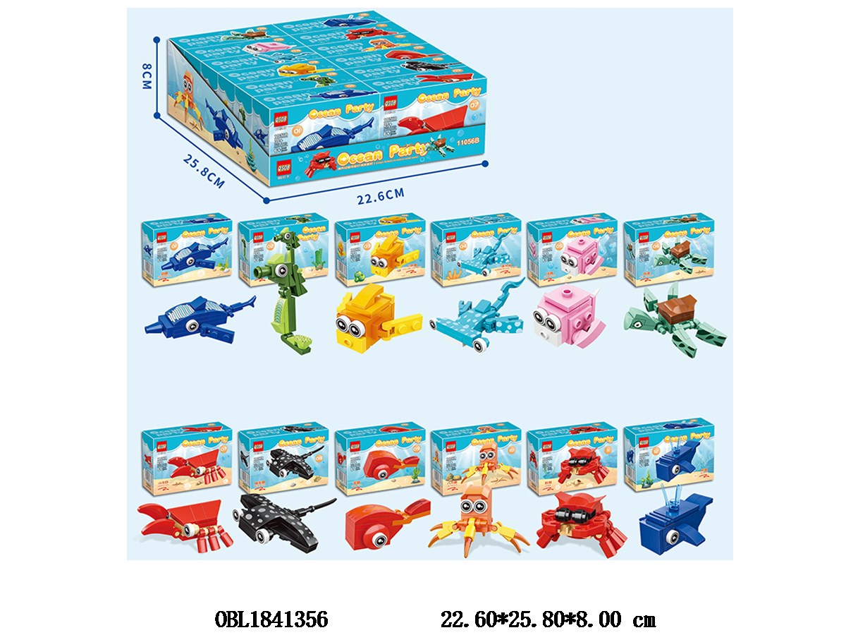 中英文版益智积木 海洋动物世界系列 12款混装 12小盒装一展示盒