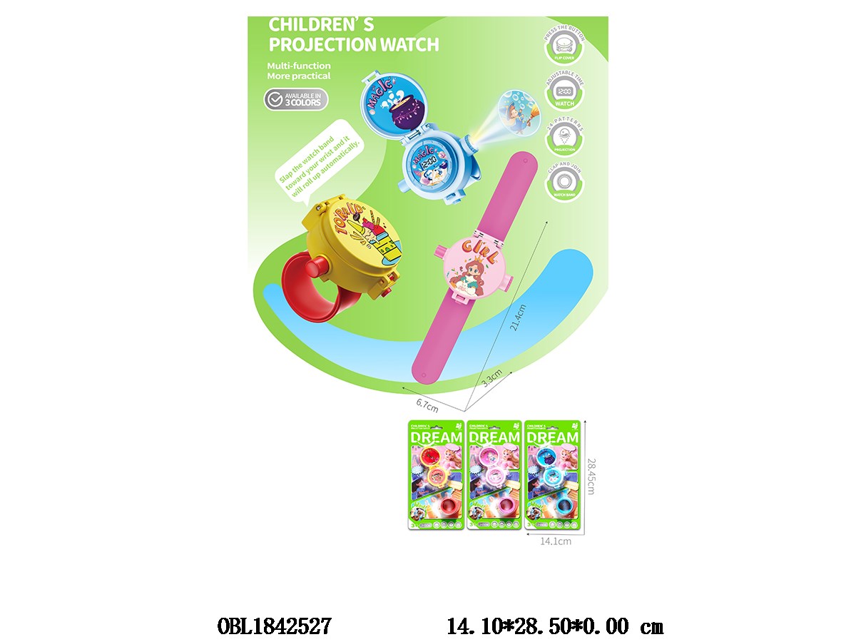 儿童翻盖投影手表 3*AG13包电 3色混装