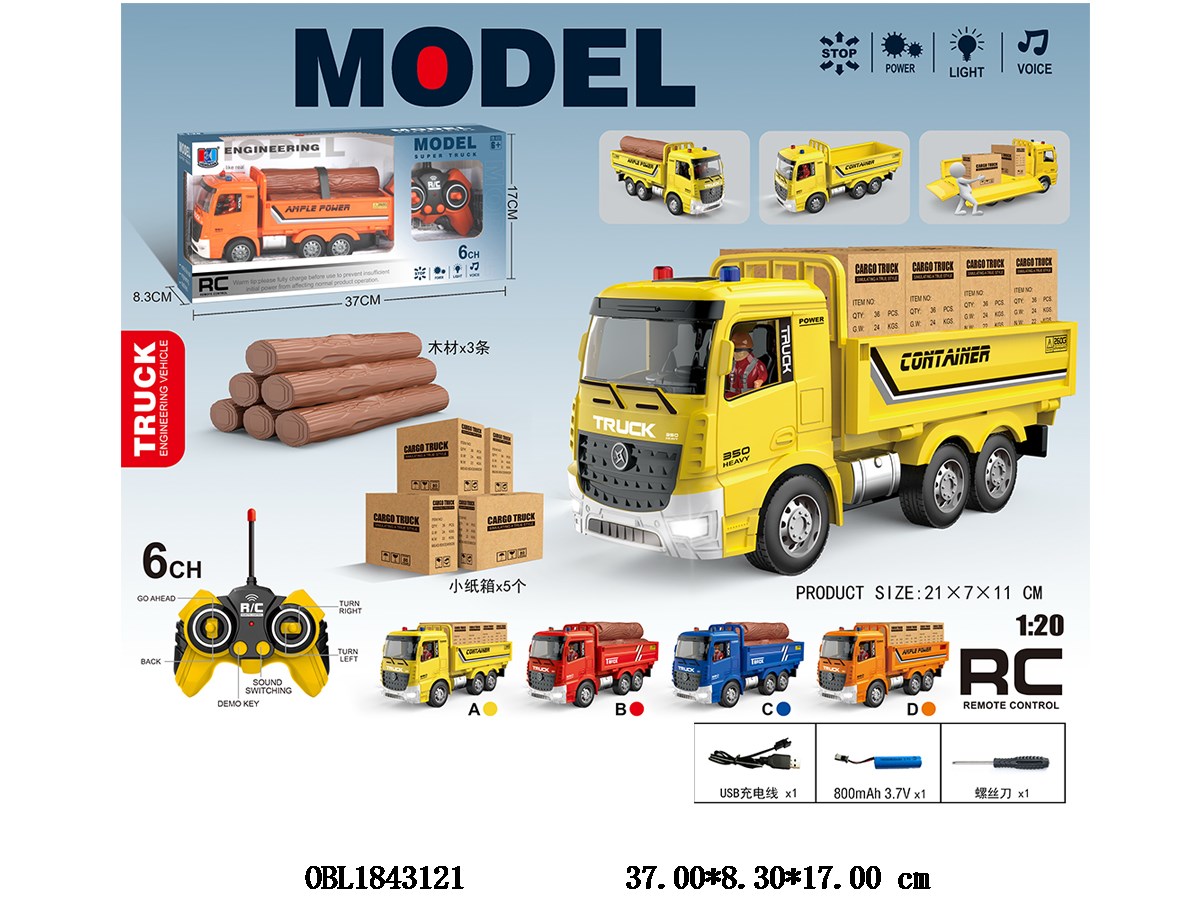 首页 > 遥控车 > 6通遥控小货车套装带灯光音乐 配USB线 车身3.7V锂电池包电 遥控器2*AA不包电 49频率 4色混装