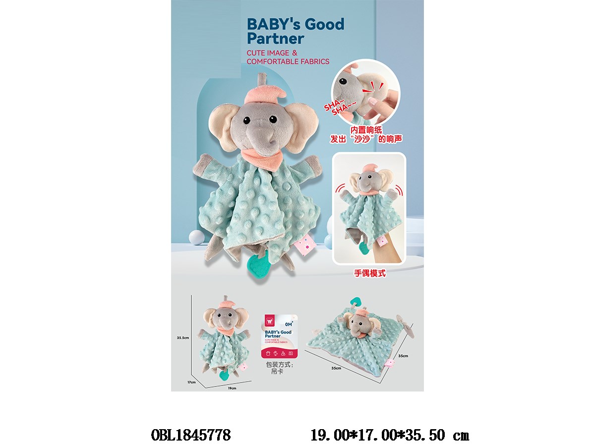 首页 > 其它婴儿玩具 > 大象手偶安抚巾 内置响纸 可水洗