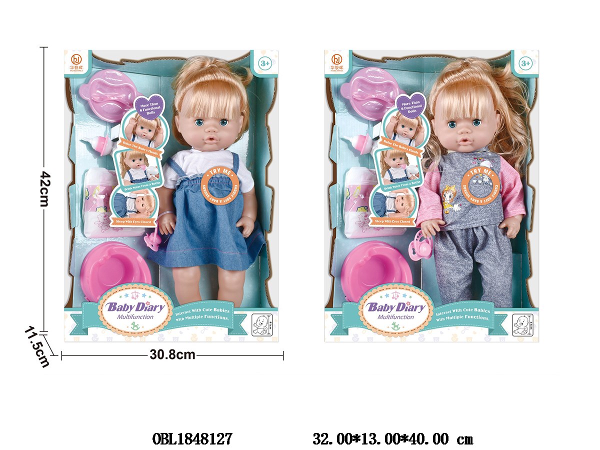 首页 > 功能娃娃 > 18寸搪胶喝水尿尿娃娃套装带IC 包电 主体衣服1款1色 2款混装