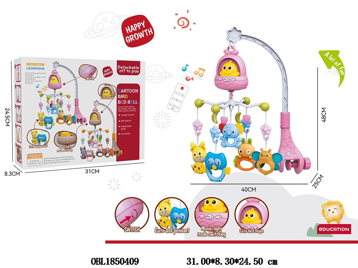 首页 > 遥控床头铃 > 遥控鸟巢床头铃带灯光音乐 3*AA不包电 遥控1*CR2025包电