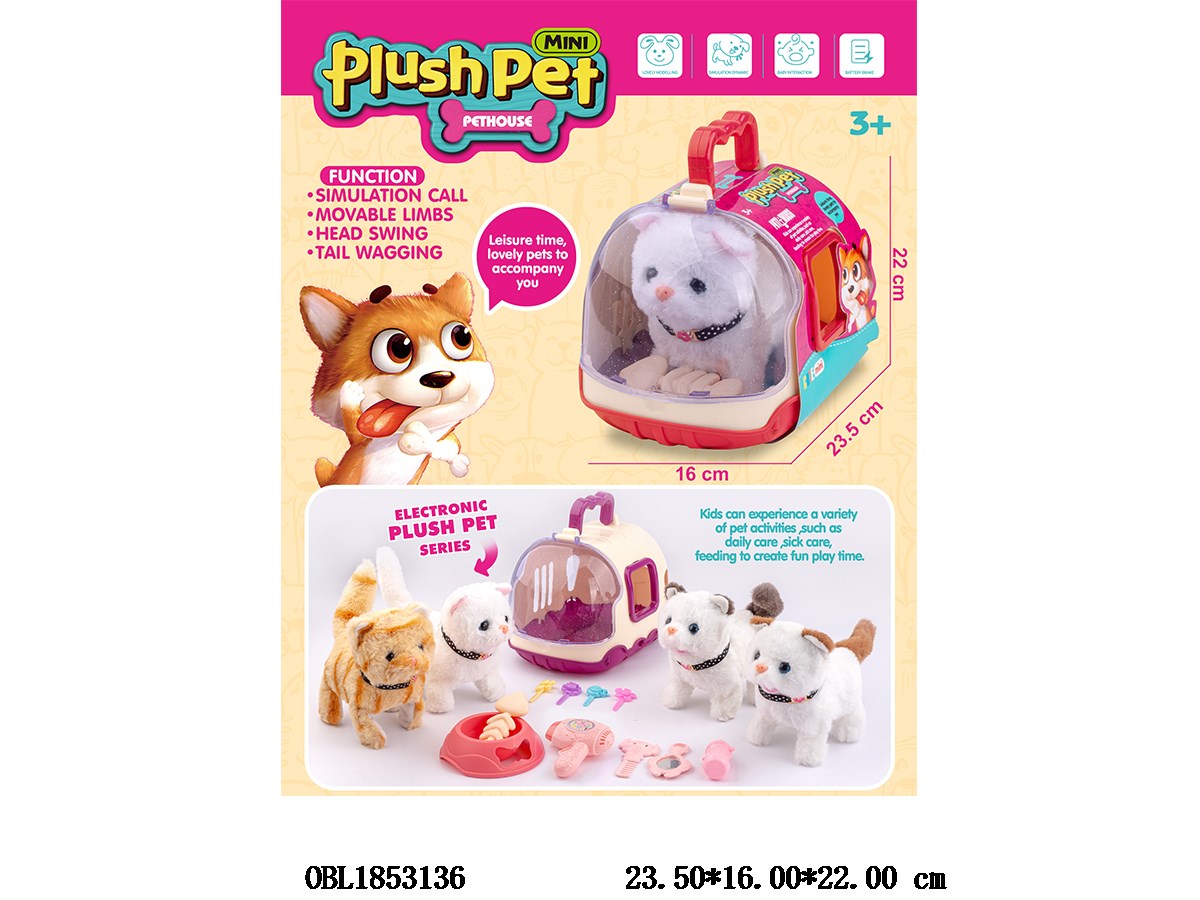 电动毛绒小猫宠物笼套装 3*AA不包电 4色混装