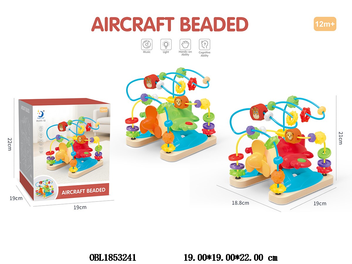 多功能木质飞机带灯光音乐 2*AA不包电 2色混装