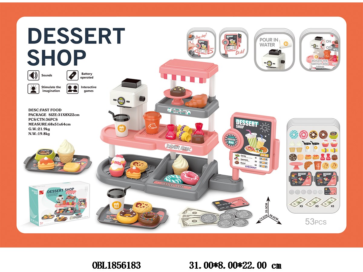 首页 > 食物套装 > 迷你甜品操作台套装带声音 可出水 2*AA不包电
