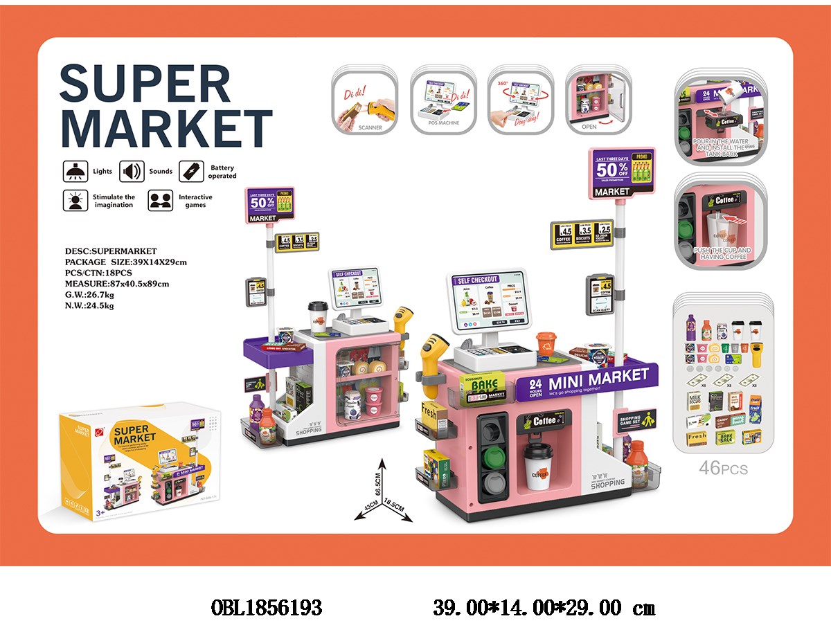 迷你超市收银台套装带灯光声音 按压出水 2*AAA不包电 2*AA不包电