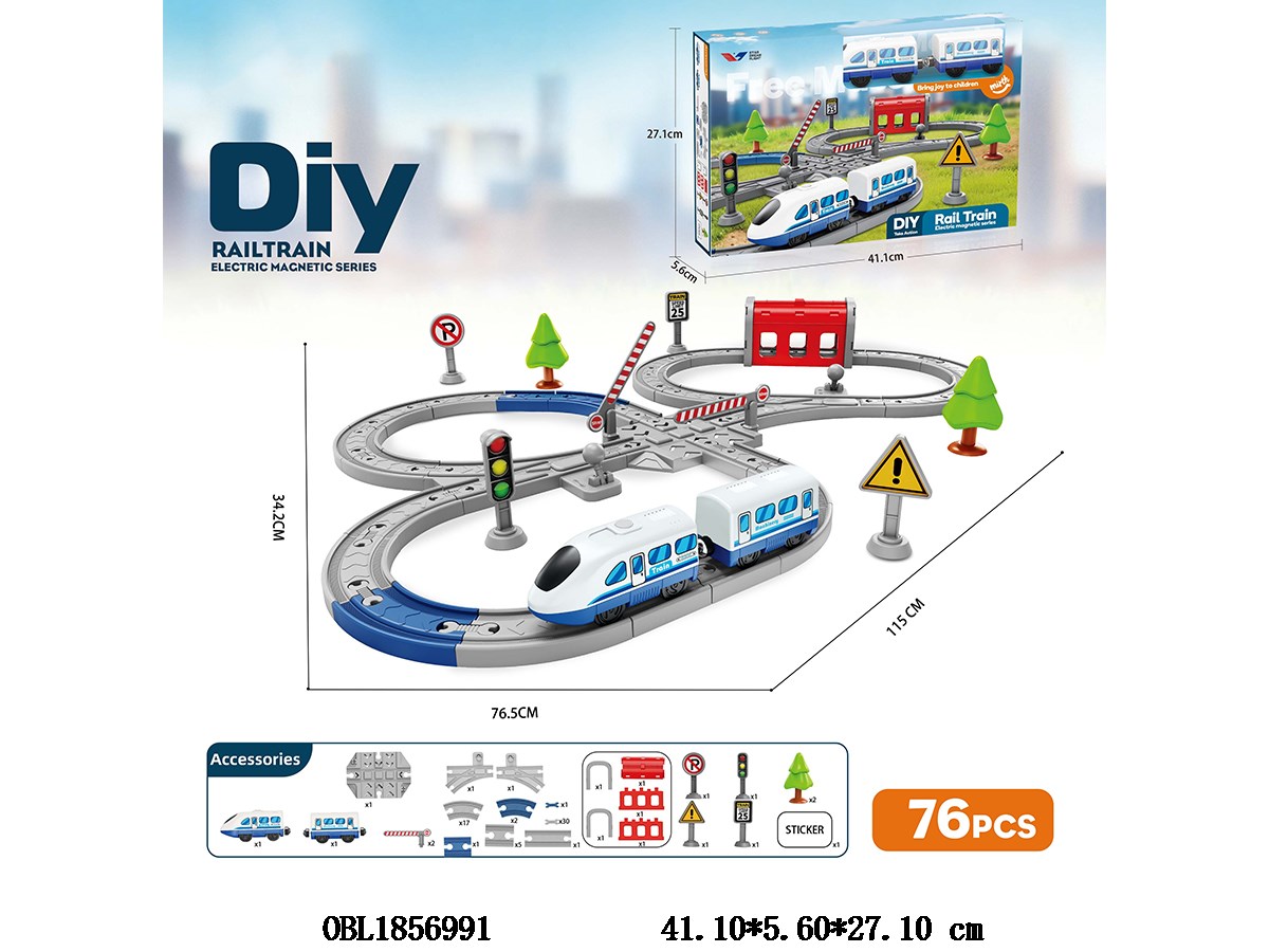 DIY拼装电动轨道车 带音乐 76PCS 2*AAA不包电