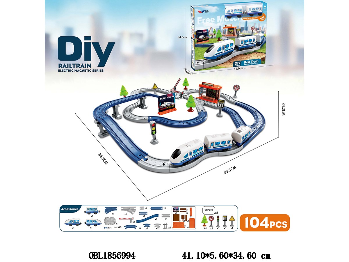 DIY拼装电动轨道车 带音乐 104PCS 2*AAA不包电