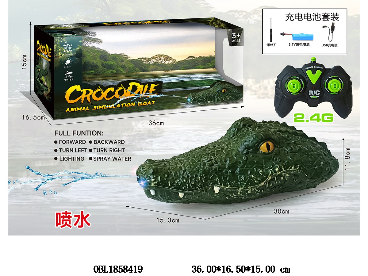 首页 > 遥控船艇 > 遥控鳄鱼船 带灯光喷水 配USB线 船身3.7v锂电池包电 遥控2*AA不包电 2.4g频率