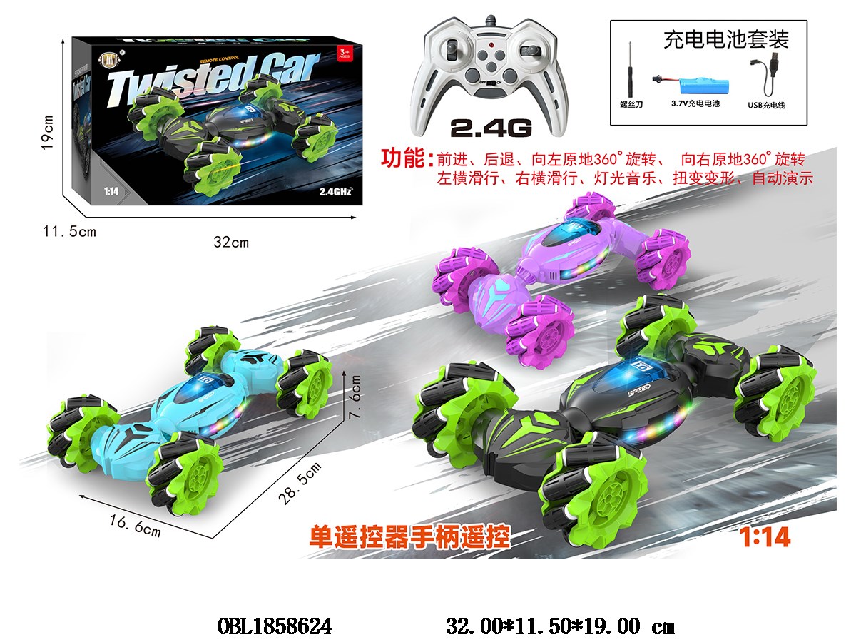 遥控特技扭变车 带灯光音乐 配USB线 车身3.7v锂电池包电 遥控2*AA不包电 2.4G频率 3色混装
