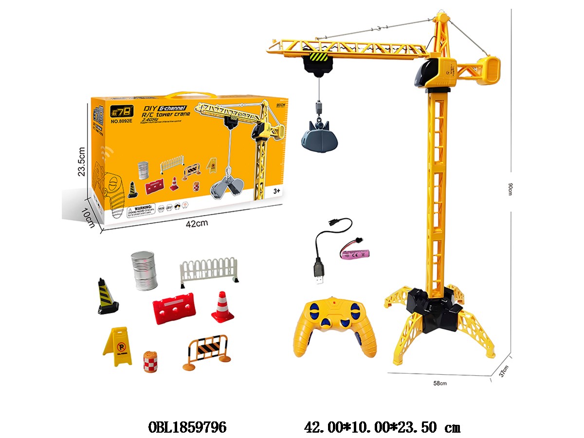 首页 > 其它遥控玩具 > 6通道遥控塔式起重机套装 配USB线 车身3.7V锂电池包电 遥控2*AA不包电 2.4G频率