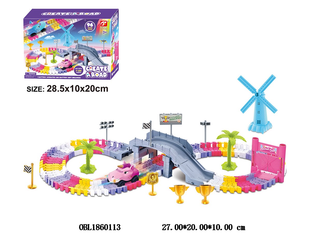 电动积木轨道车套装 配1只独角兽车带灯光 1*AA不包电