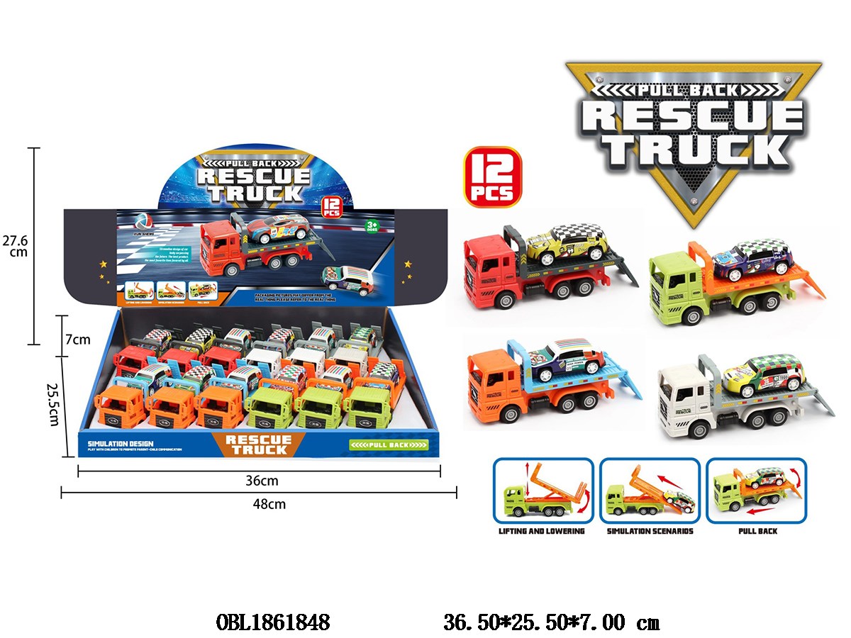 首页 > 回力车 > 回力拖车载回力铁皮车 4款混装 12只装1展示盒