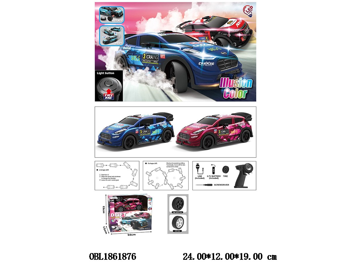 首页 > 遥控车 > 1:22四驱遥控漂移车带灯光配USB线 车身3.7V包电 遥控器2*AA无包电 TRY ME 3*AG13包电 2.4G频率 2色混装