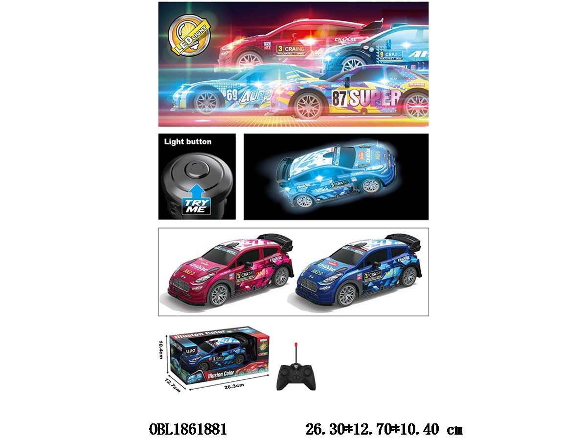 1:22四通遥控车带灯光 车身3*AA不包电 遥控器2*AA无包电 TRY ME 3*AG13包电 27频率 2色混装