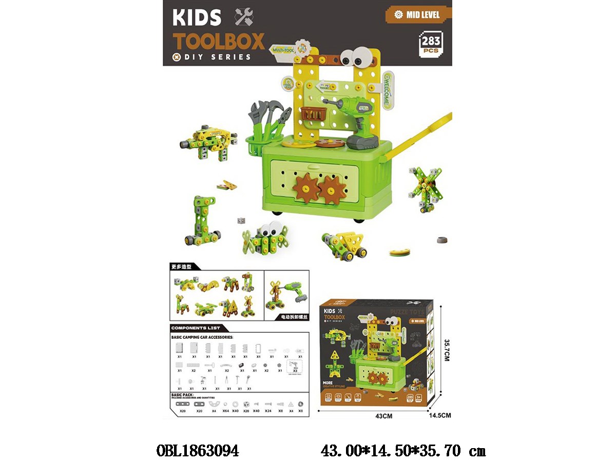 益智拼装螺丝积木套装 配电钻 2*AA不包电 283PCS