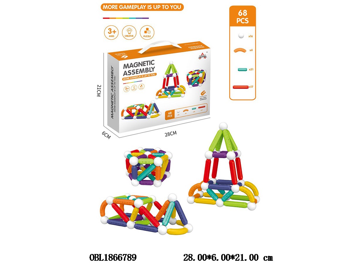 首页 > 磁性积木 > 益智百变拼装磁力棒 68PCS