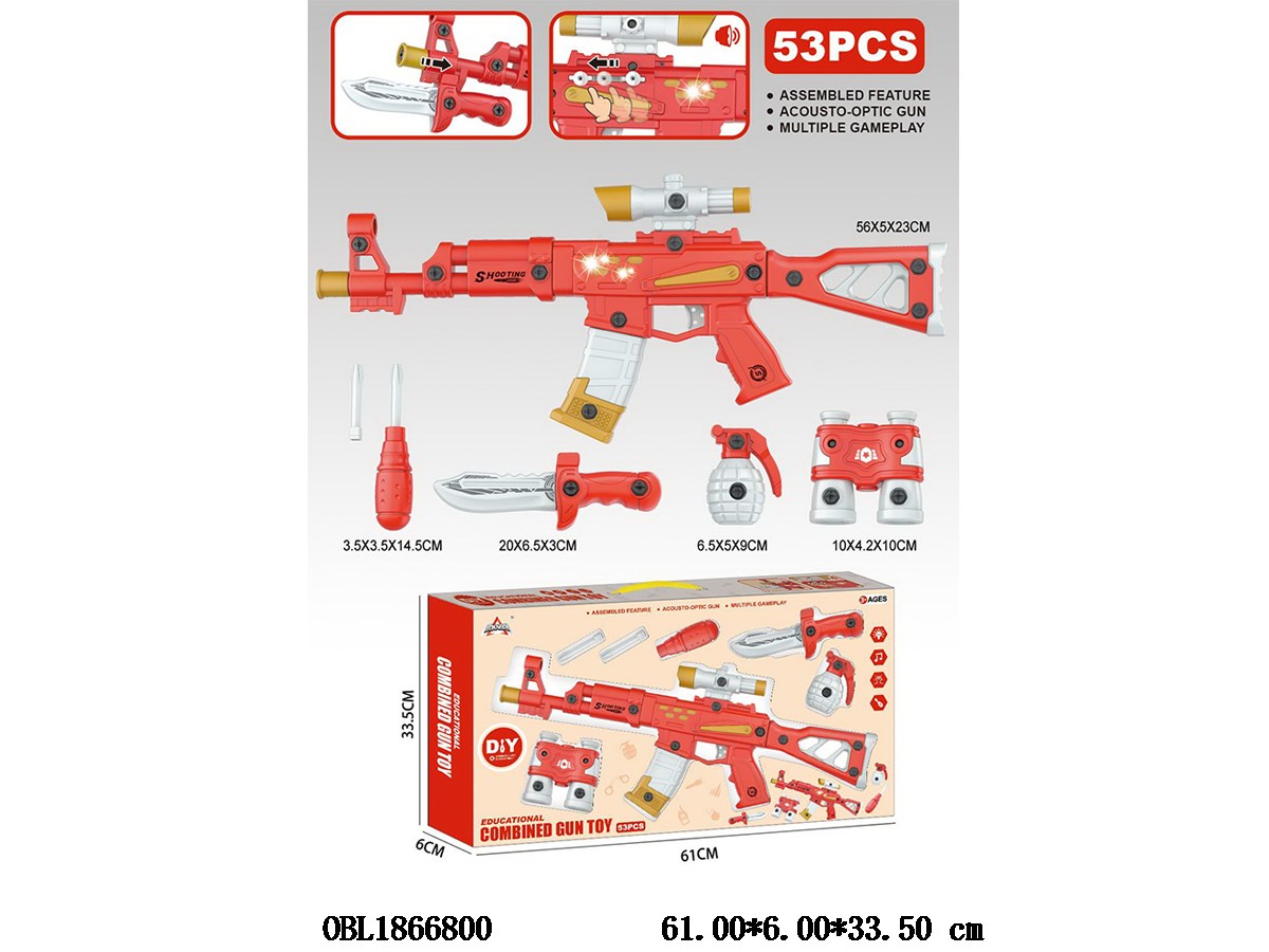 益智拆装玩具套装 53PCS 八音枪带灯光声音 2*AA不包电