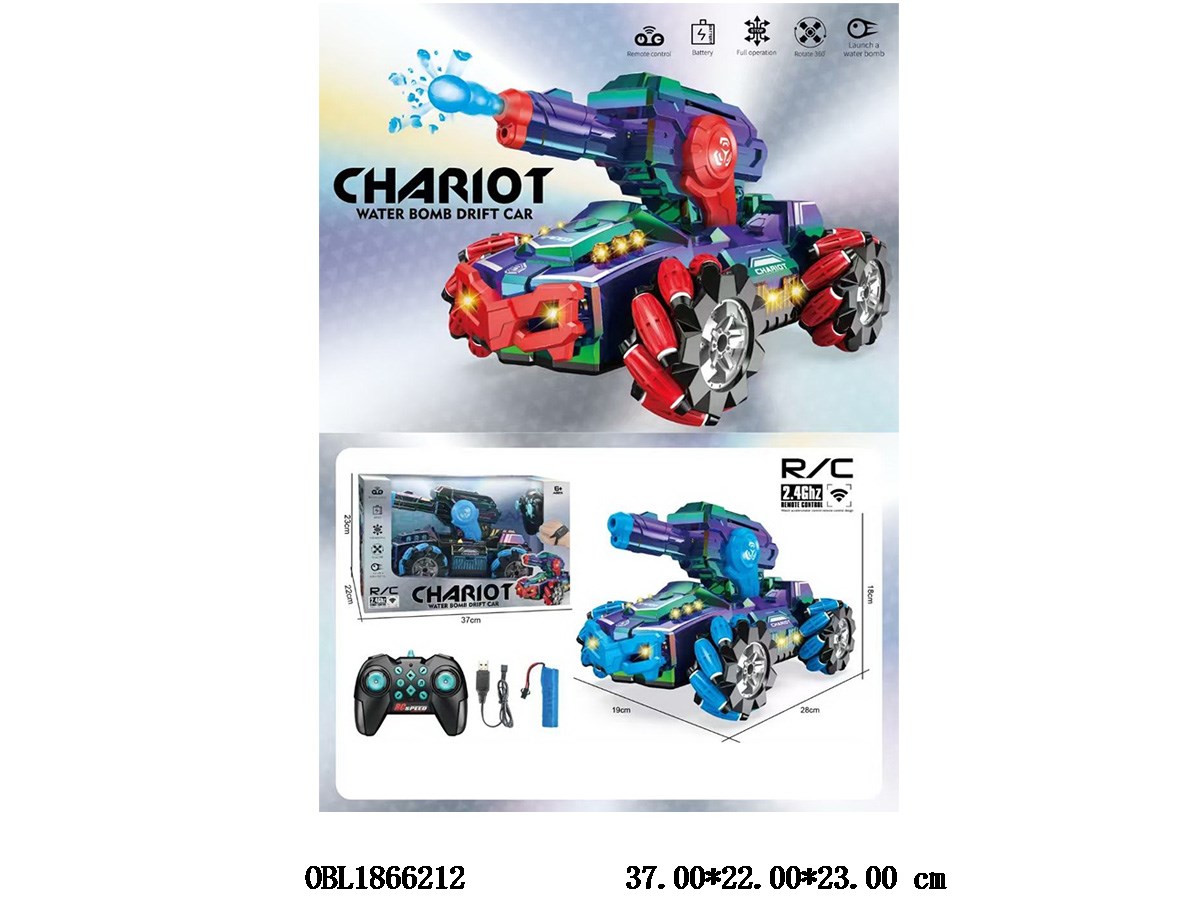 首页 > 遥控车 > 遥控坦克车带灯光音乐 可打水弹 配USB线 车身3.7V锂电池包电 遥控器2*AA不包电 2.4G频率 2色混装