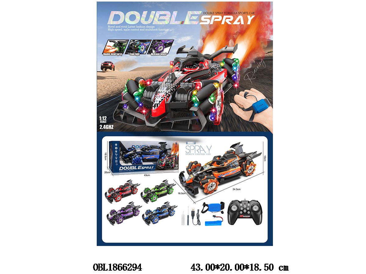 首页 > 遥控车 > 双遥控赛车带灯光音乐喷雾 配USB线 车身3.7V锂电池包电 遥控器2*AA不包电 手表遥控3.7V锂电池包电 2.4G频率 5色混装