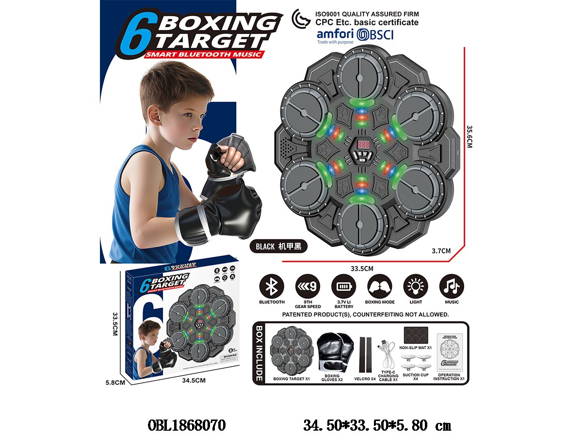 机甲黑6键智能蓝牙音乐拳击靶套装 配USB线 3.7V电池包电