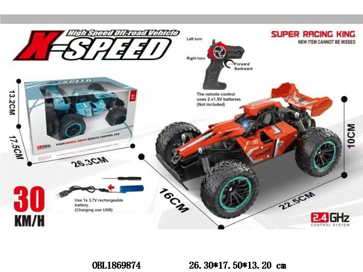 首页 > 遥控车 > 越野四驱遥控车带灯光 配USB线 车身3.7V锂电池包电 遥控器2*AA不包电 2.4G频率 2色混装