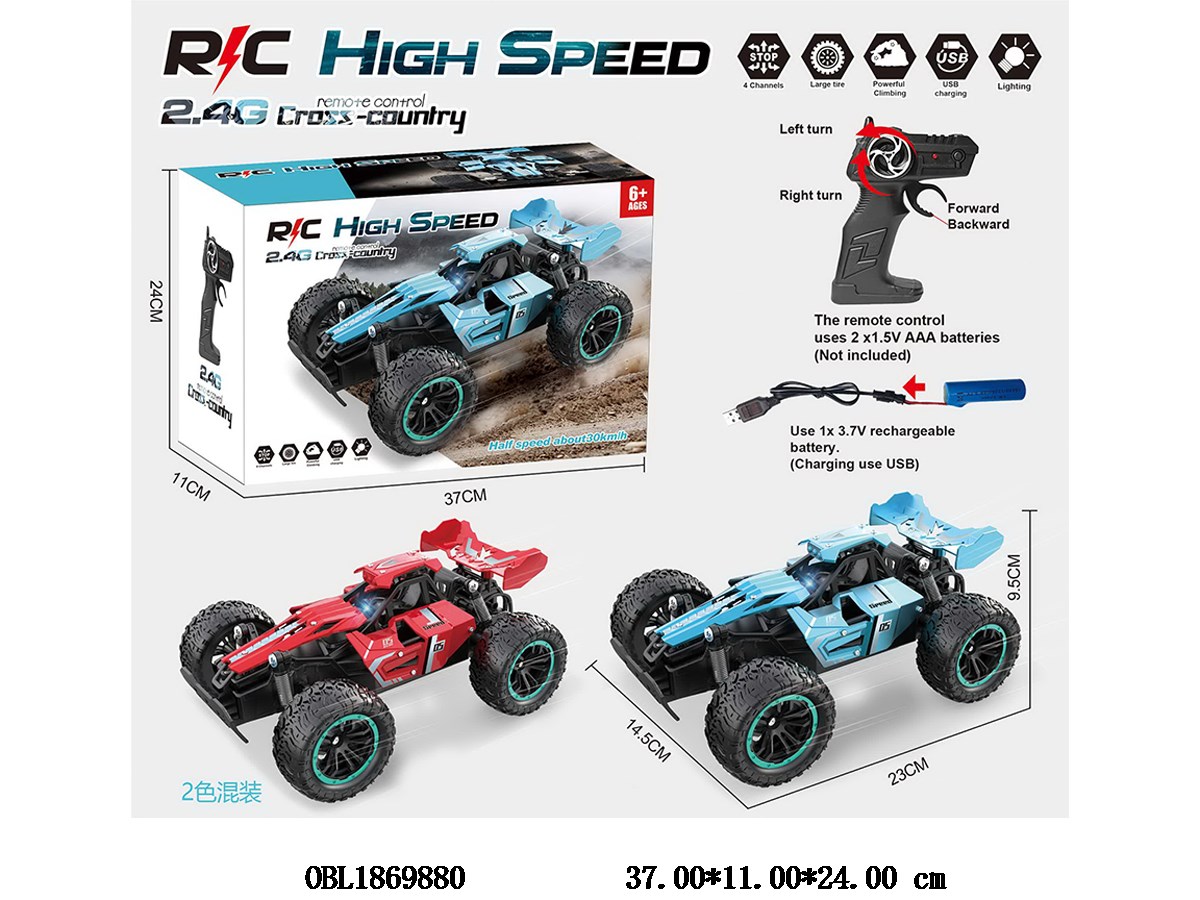 遥控高速车带灯光 配USB线 车身3.7V锂电池包电 遥控器2*AA不包电 2.4G频率 2色混装