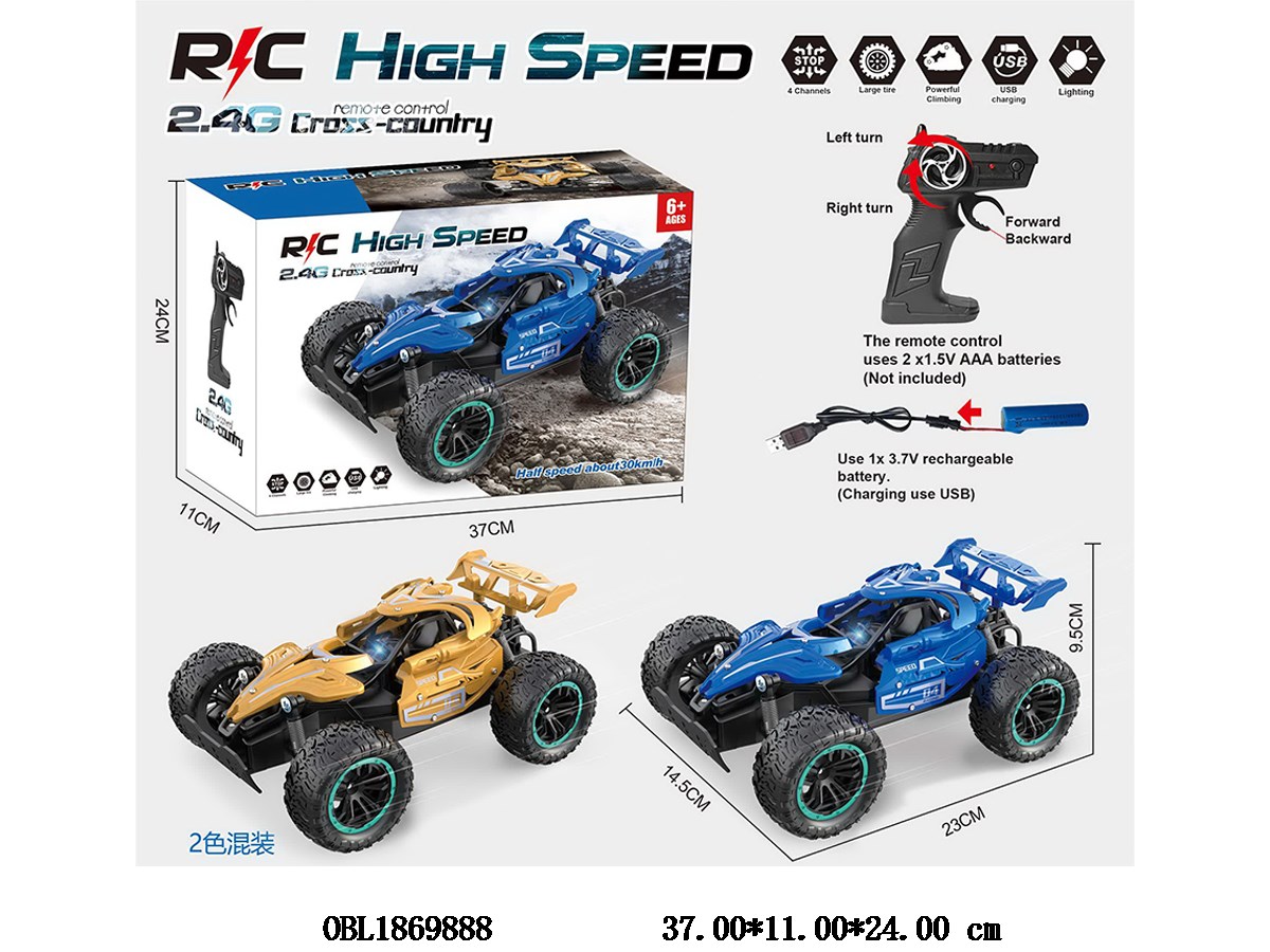 遥控高速车带灯光 配USB线 车身3.7V锂电池包电 遥控器2*AA不包电 2.4G频率 2色混装