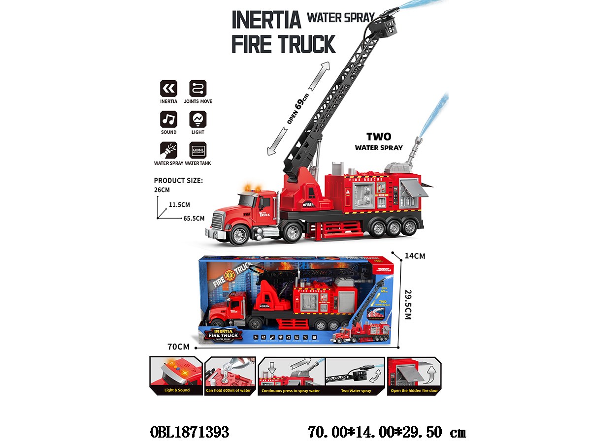 惯性消防云梯车带灯光声音喷水 2*AAA不包电