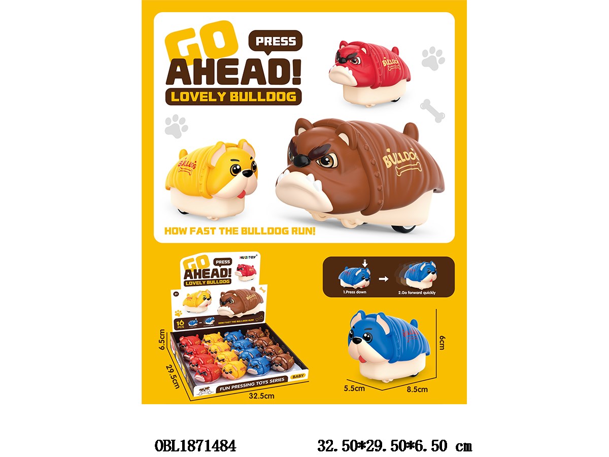 按压斗牛犬/哈巴狗 2款4色混装 12只装一展示盒